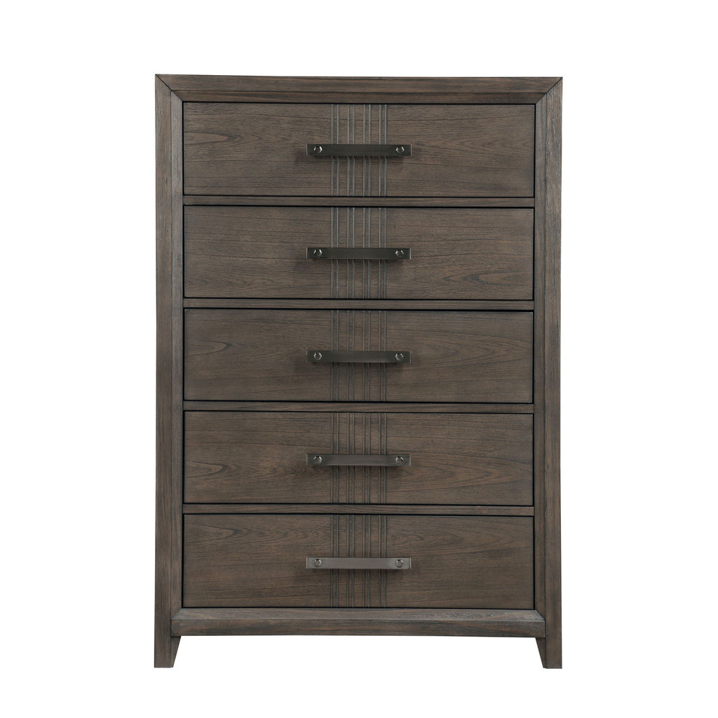 The Landon 5-Drawer Chest in Walnut is a perfect blend of durability, style, and functionality, making it an essential addition to any bedroom. Expertly crafted from solid Pine, high-quality engineered woods, and genuine Mindi wood veneers, this chest is designed to last while showcasing the natural beauty of wood with its multi-step walnut finish and subtle gray undertones. The five spacious drawers provide ample storage, with dovetailed construction and full-extension slides that ensure smooth and effortless operation. Thoughtful details like snag-free drawer interiors and velvet-lined top drawers offer added protection for your valuables, while modern flat bar pulls enhance the sleek, contemporary design. The Landon Chest is both a stylish and practical solution for organizing your living space.