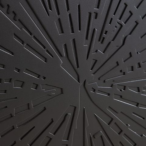 - 3 doors with carved starburst pattern and push magnet door function