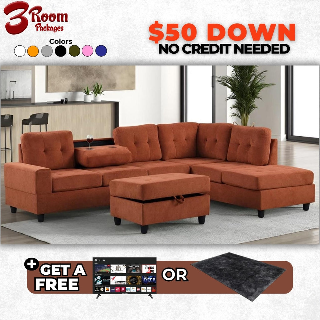 Rocket 2-Piece Sectional – Includes Free TV or Area Rug (Available in 7 Colors)