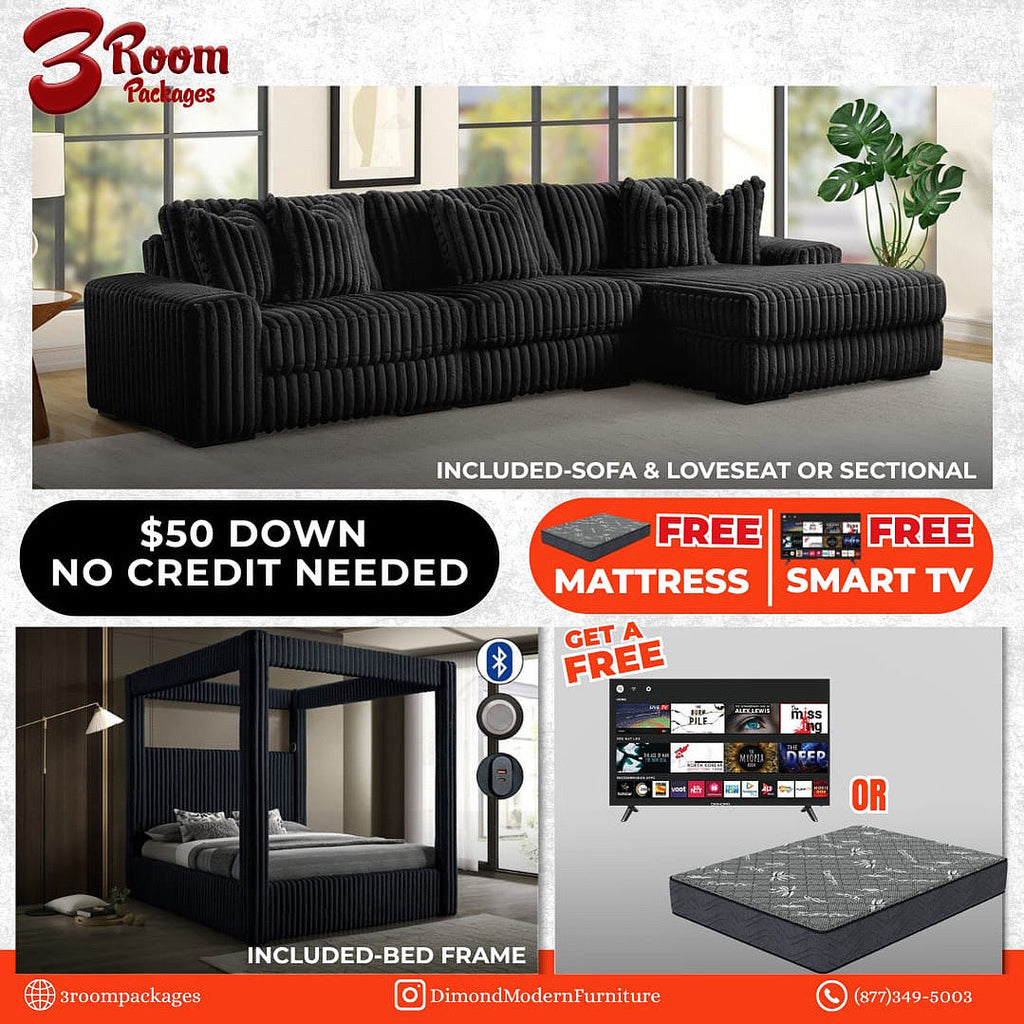 Turn your space into a cozy haven with our signature bundle: a plush single chaise sectional in corduroy and a corduroy-upholstered bed in your choice of queen or king. Top it off with your choice of a free mattress or a free TV—because a great deal should feel amazing from day one.