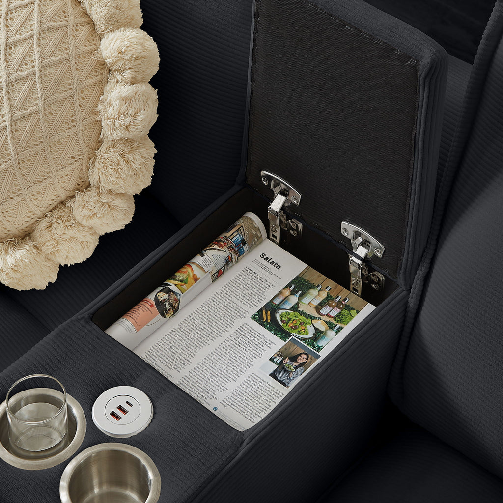 - Chaise Footrest with Storage: Two chaise sections feature under-seat storage drawers for convenient organization of everyday items