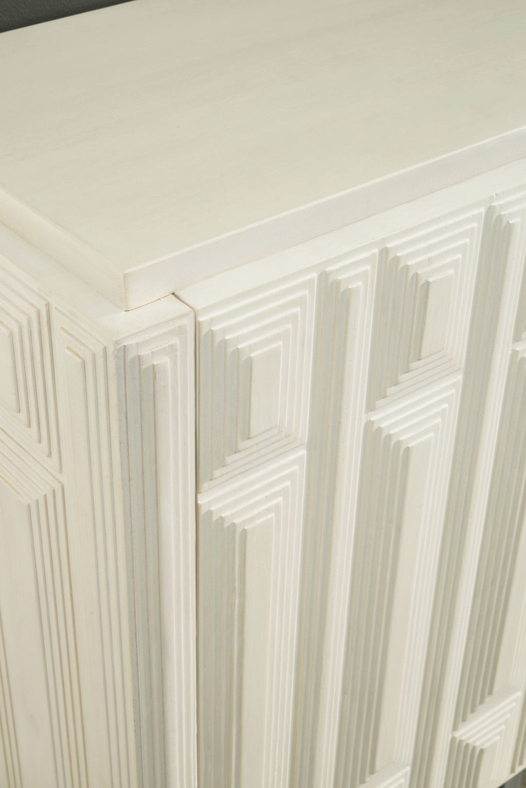 - Lightly distressed white finish