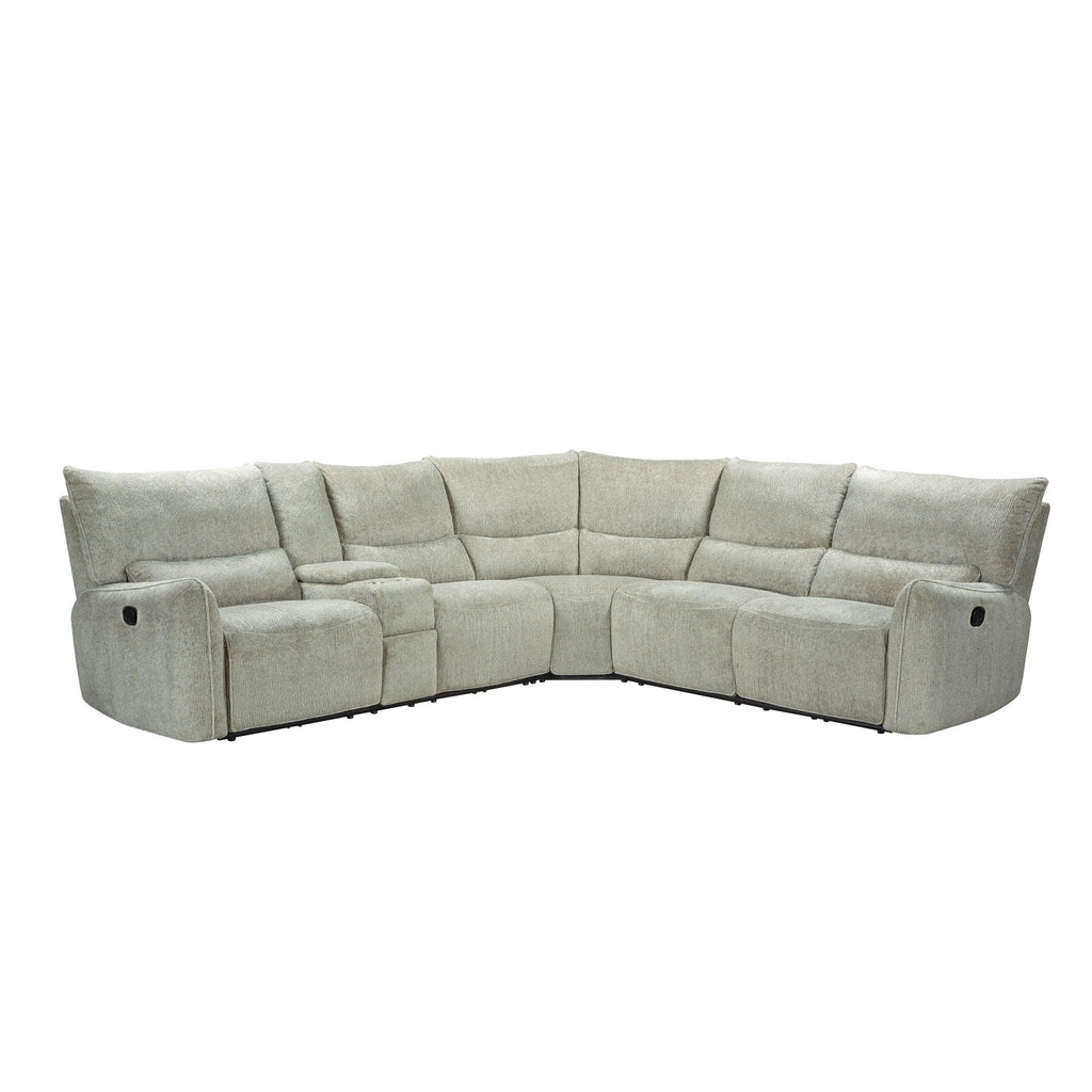 The Remsen Reclining Sectional combines cozy comfort and practical features, making it an excellent addition to any living space. Its soft, textured upholstery, highlighted with tones, is crafted from 100% easy-care polyester for ultimate convenience. The pillow-edged back cushions, paired with lumbar support and softly curved arms, add both comfort and style to its sleek, contemporary design. With three fully upholstered recliners, this sectional provides the perfect spot to relax and recharge. Built with durable hardwood and engineered wood frames, coil spring cushions wrapped in resilient foam, and no-sag seat suspension, this sectional ensures long-lasting comfort and support. Handy lifestyle features such as a center console for storing remote controls and built-in cupholders make it as functional as it is stylish.