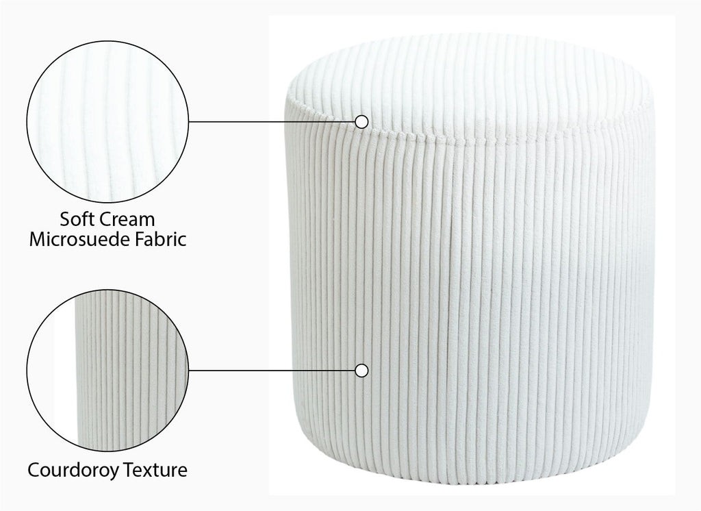 Roy - Round Microsuede Ottoman / Stool - Cream