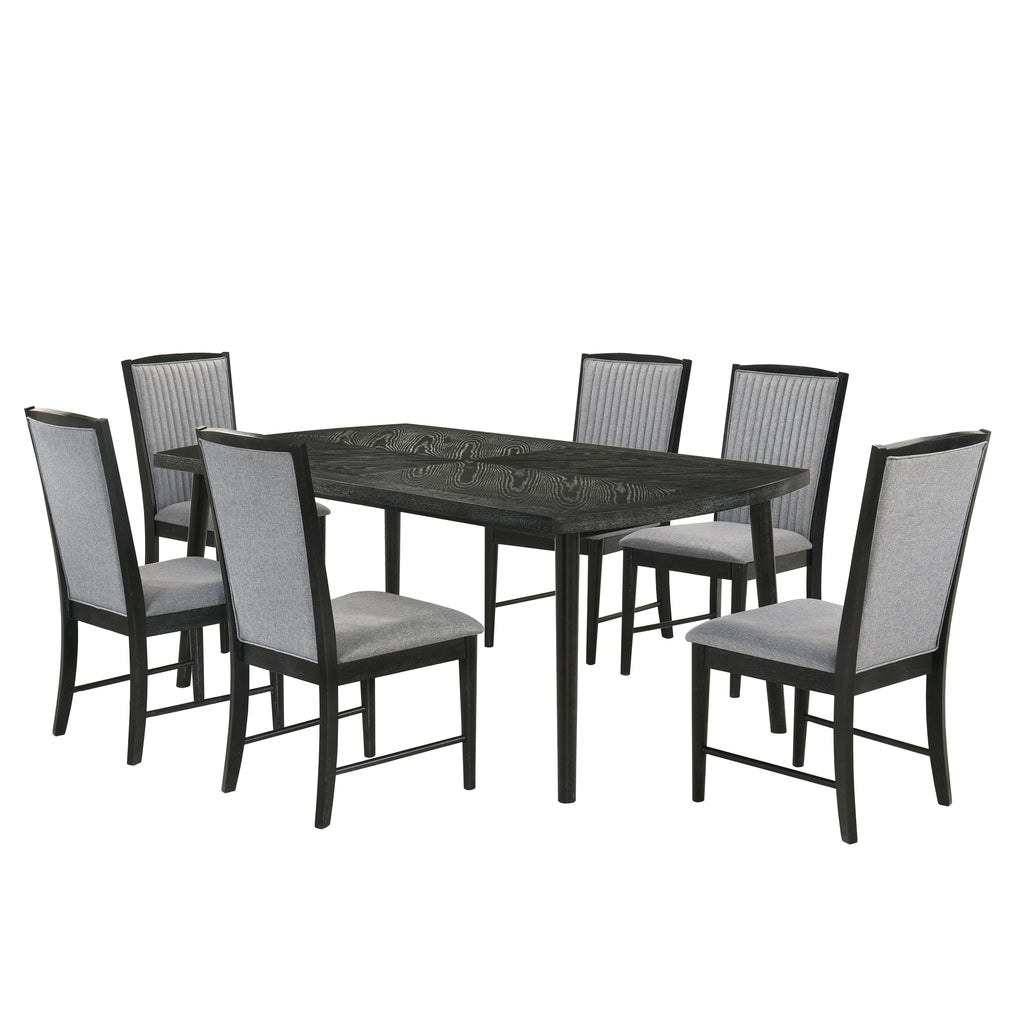 The Skyline Dining Collection blends bold, contemporary style with urban edge. Crafted from solid Rubberwood, engineered woods, and Ash veneers, each piece flaunts a finish with subtle glazing that highlights the wood grain. The collection includes a 78" Rectangle Dining Table and Dining Side Chairs featuring clean lines, tapered legs, ribbed fabric accents, and plush cushions. Built for durability and style, it balances function and modern design perfectly.