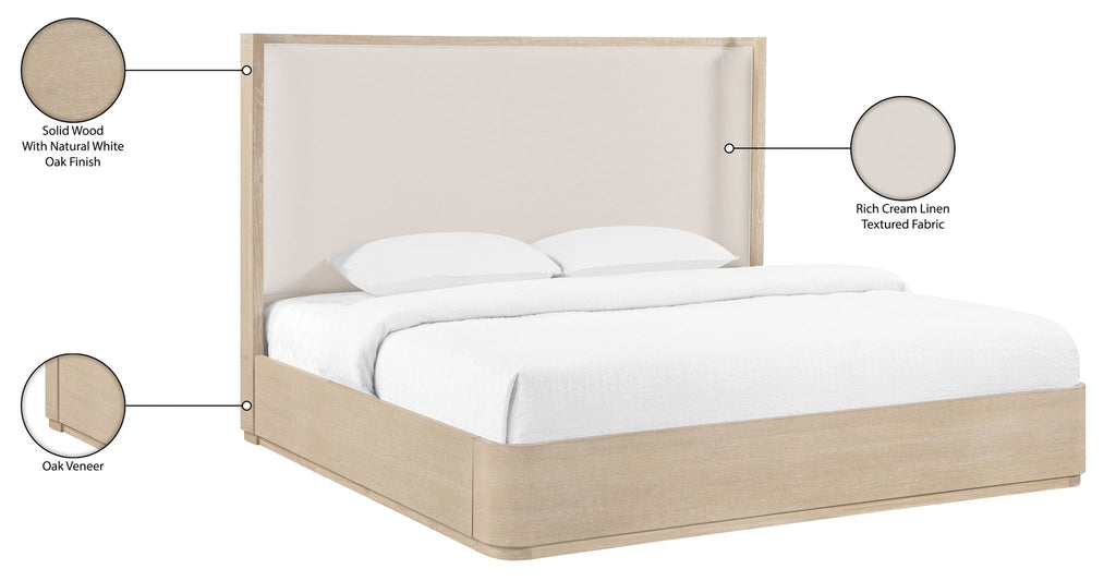 Tiberio - Solid Wood And Linen Textured Fabric King Bed (3 Boxes) - Natural / Cream