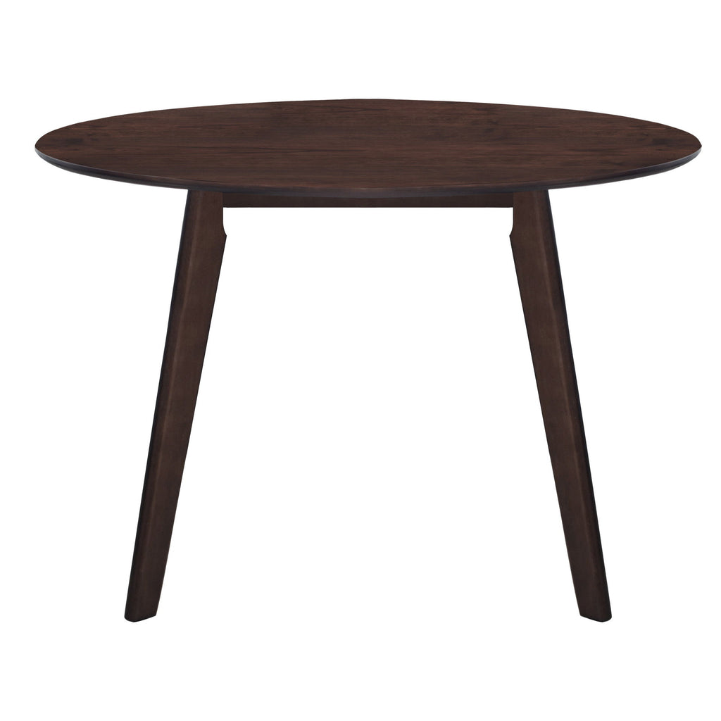 The Tioga 47" Round Table in Brown Cherry combines durable craftsmanship with modern style, making it a standout addition to any dining space. Constructed from solid Rubberwood, manufactured woods, and Cherry wood veneers, this table is designed for longevity and stability. Its clean lines, minimalist approach, and smooth surfaces contribute to a sleek contemporary look, perfect for modern interiors. The warm Cherry finish enhances the natural beauty and grain patterns of the wood, adding a touch of elegance. Ideal for small space dining, this 47" round table comfortably seats four and fits seamlessly into kitchens and dining rooms. This table not only meets your dining needs but also adds a touch of timeless style to your home.