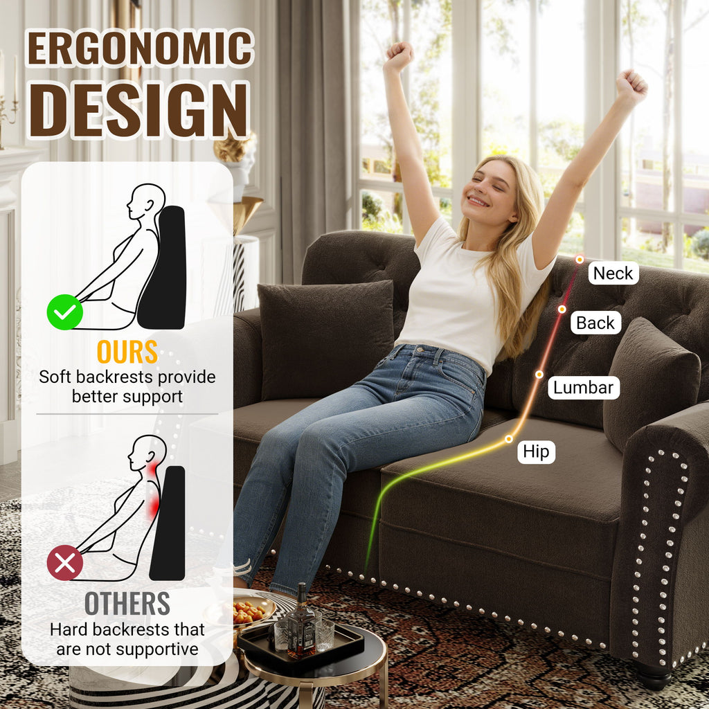 - TIMELESS DESIGN STYLE:This sofa is a dialogue across eras. It skillfully extracts the soul of the classic Chesterfield style. Each vintage detail is reimagined with contemporary proportions and attitude, creating a bridge between two golden eras of design