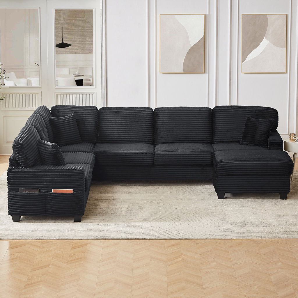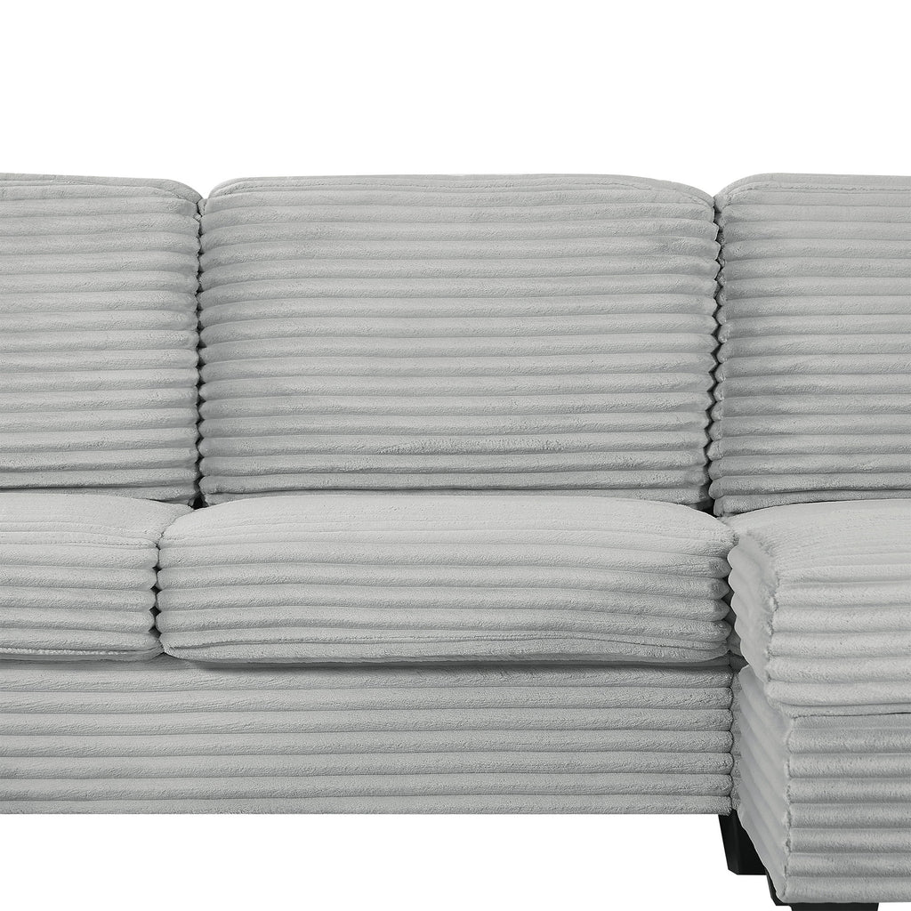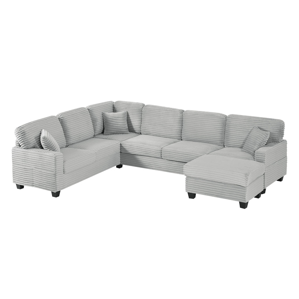 Modern U Shaped Sectional Sofa With Movable Ottoman And Side Storage Pockets Corduroy - Gray