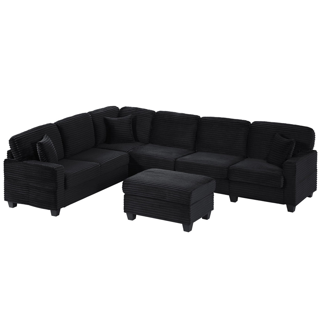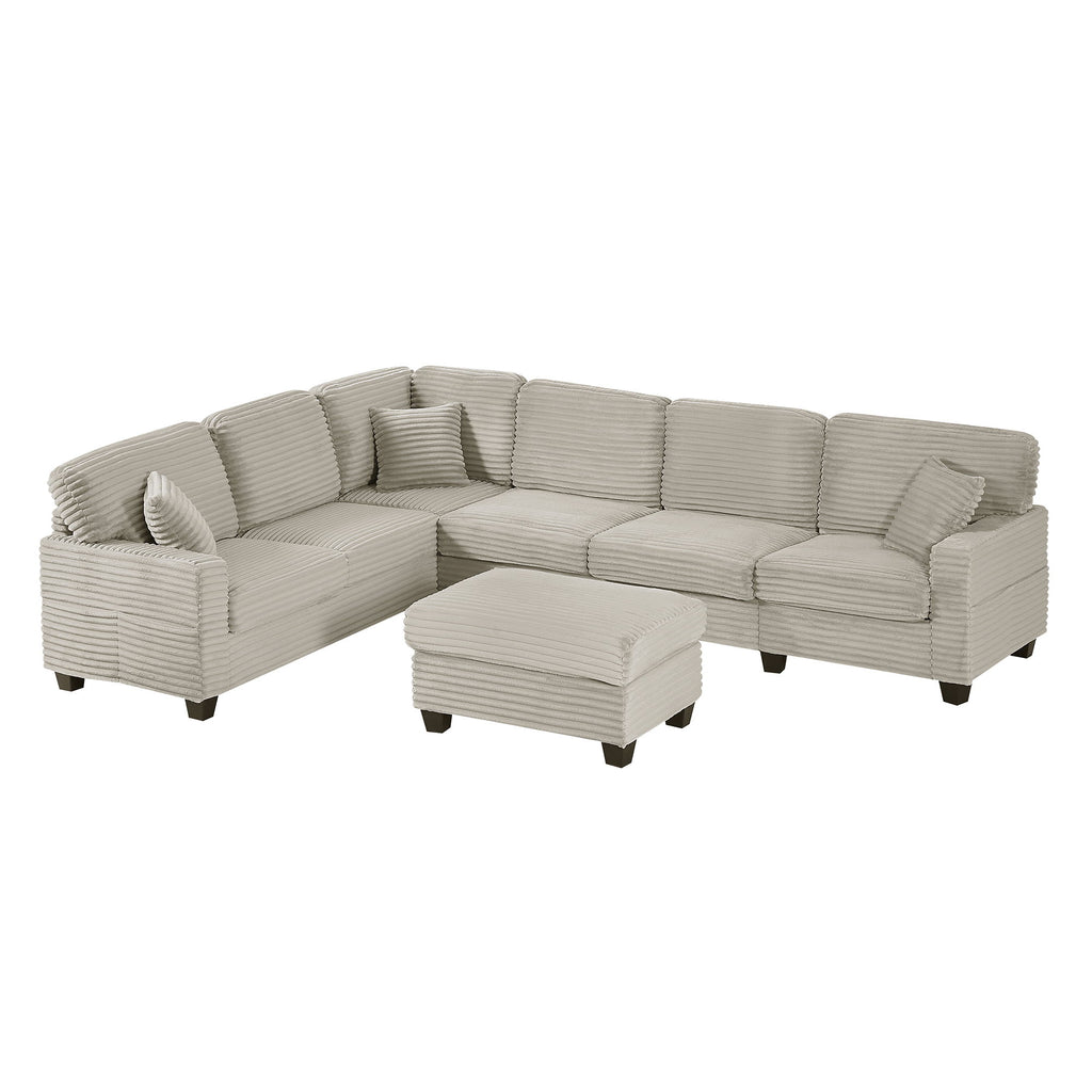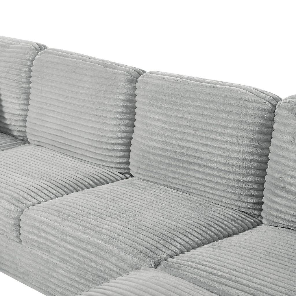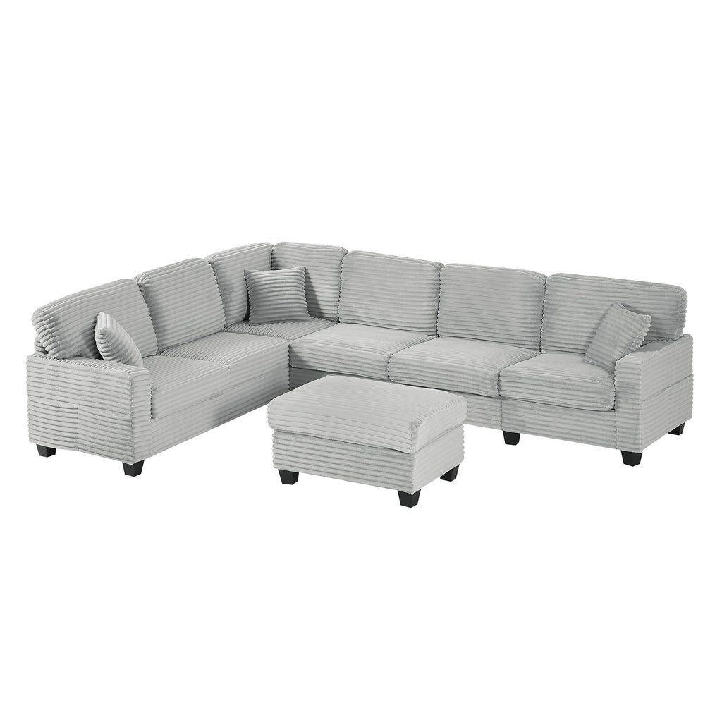 Modern U Shaped Sectional Sofa With Movable Ottoman And Side Storage Pockets Corduroy - Gray