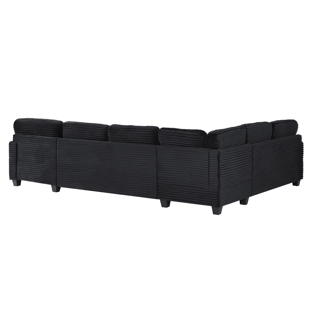 Upholstered U Shaped Sectional Sofa With Movable Ottoman And Side Storage Pockets - Black