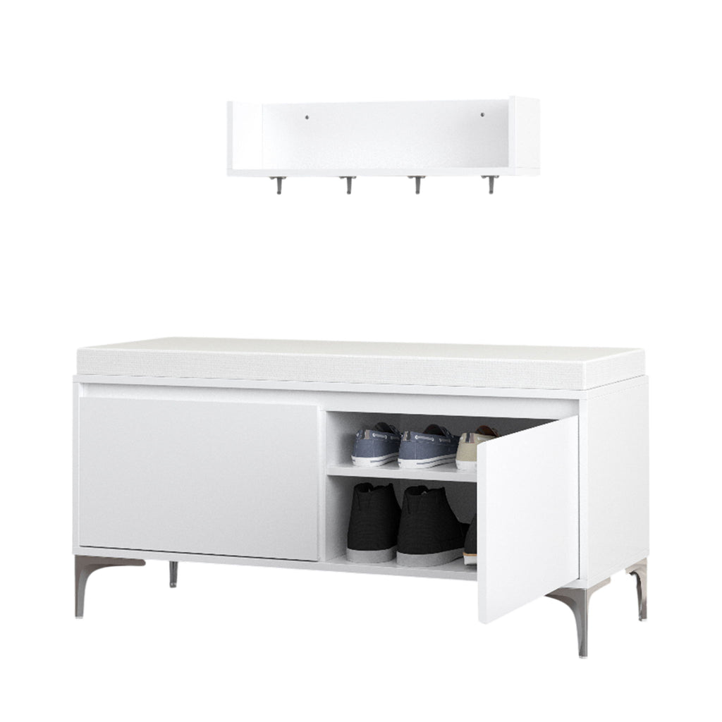 Wall Mounted Entryway Shelf With Hooks And Storage Bench Set - Off White