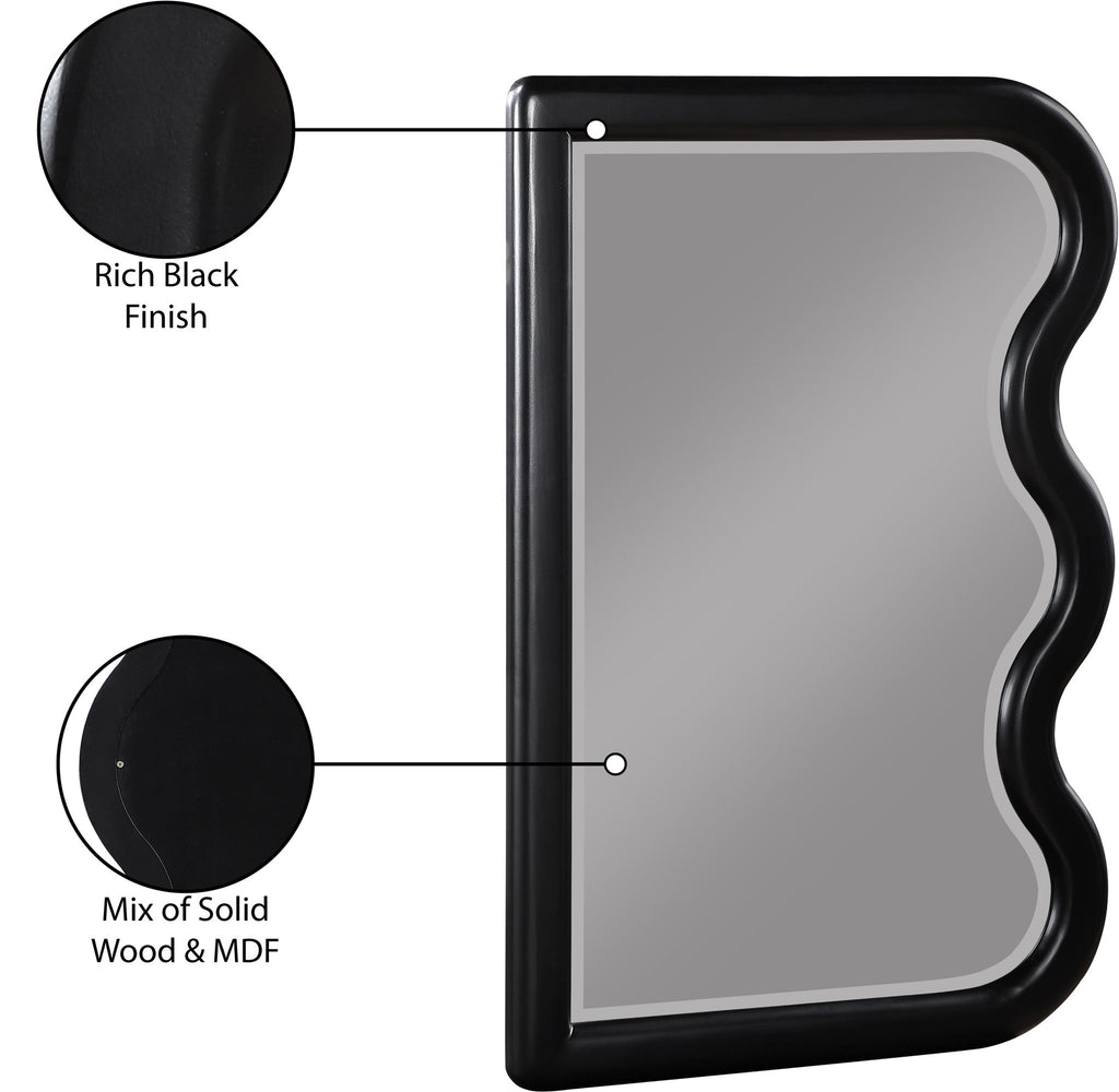 Make any wall a reflection of your good taste when you hang this Winnie black mirror for all to see. Its rich finish, crafted from a mix of solid wood and MDF, exudes timeless elegance. The art deco design adds a touch of vintage glamour to contemporary spaces, creating a focal point that captures attention. Perfect for adding depth and style to any room, this mirror blends classic craftsmanship with modern sensibility, making it a must-have for sophisticated interiors.